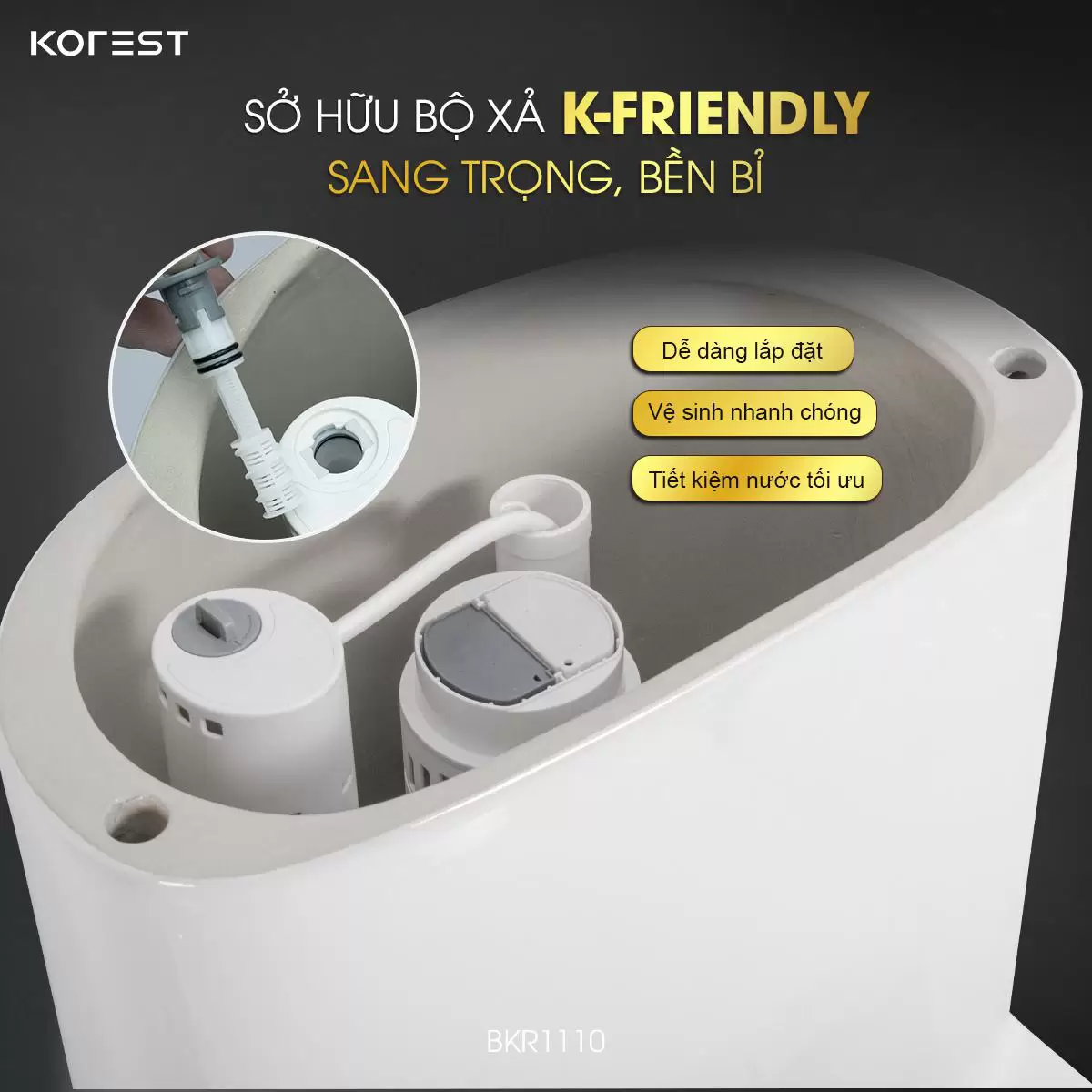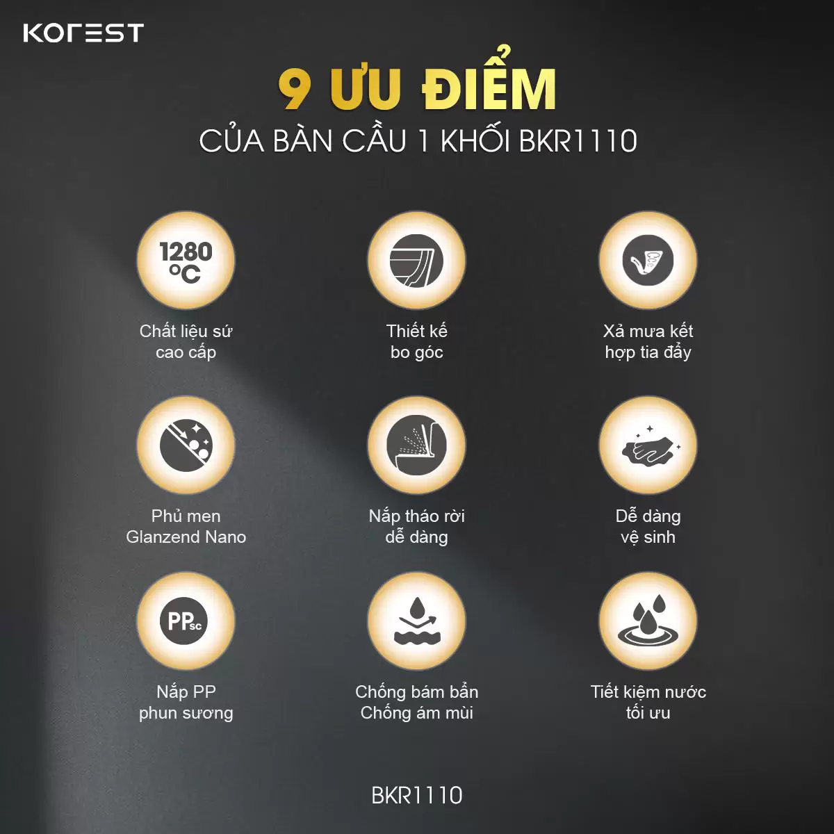 Không chỉ là một thiết bị vệ sinh, bồn cầu 1 khối KOREST BKR1110 là tuyên ngôn về phong cách sống tinh tế và sang trọng. Sở hữu thiết kế bo cạnh mềm mại, hài hòa trong từng đường nét, sản phẩm dễ dàng nâng tầm thẩm mỹ cho mọi không gian. Là một trong những mẫu nổi bật của dòng thiết bị vệ sinh cao cấp KOREST, BKR1110 chinh phục người dùng bởi sự kết hợp hoàn hảo giữa vẻ đẹp trang nhã và trải nghiệm tiện nghi vượt trội – lựa chọn lý tưởng cho những ai đang kiến tạo không gian sống hiện đại và đẳng cấp.