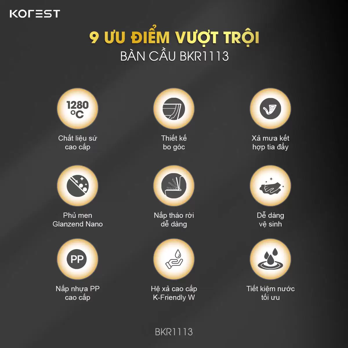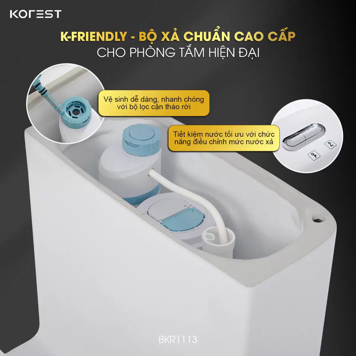 Thanh lịch nhưng đầy cuốn hút – bồn cầu 1 khối KOREST BKR1113 là minh chứng rõ ràng nhất cho triết lý thiết kế “NÂNG CAO THẨM MỸ, TỐI ƯU TRẢI NGHIỆM”. Với kiểu dáng nhỏ gọn, bo cong nhẹ nhàng và bề mặt hoàn thiện tỉ mỉ, BKR1113 mang đến sự hài hòa tuyệt đối cho không gian phòng tắm hiện đại. Là một trong những lựa chọn đáng chú ý của dòng thiết bị vệ sinh KOREST, sản phẩm không chỉ làm đẹp cho không gian sống mà còn đáp ứng tối đa nhu cầu tiện nghi trong từng chi tiết.