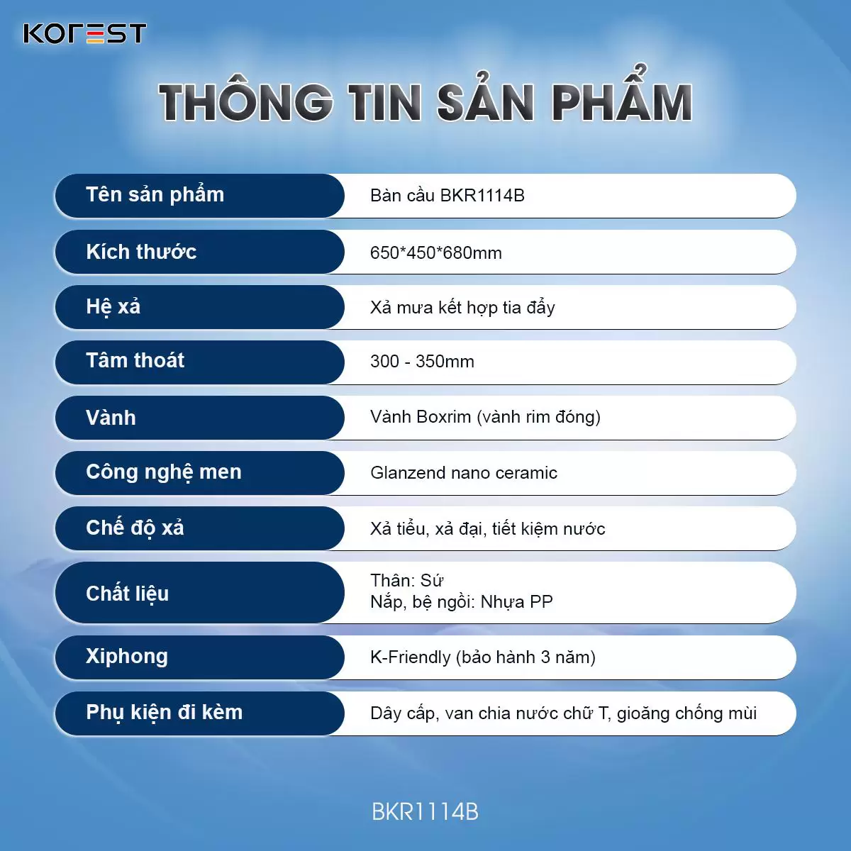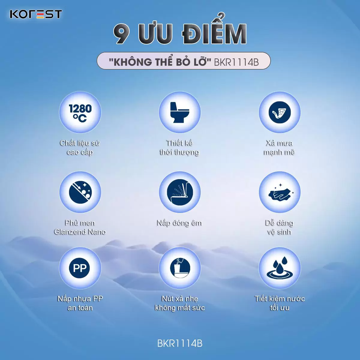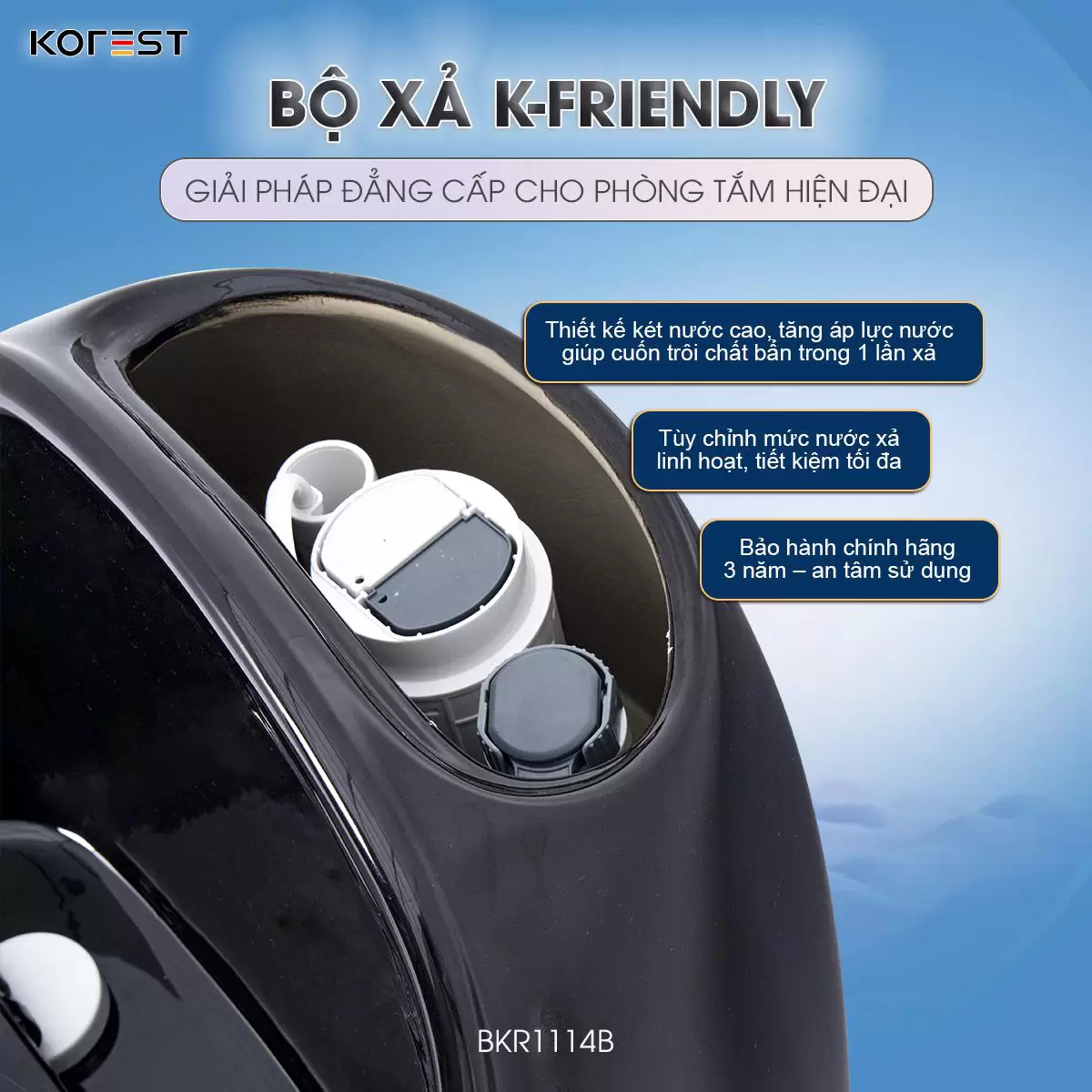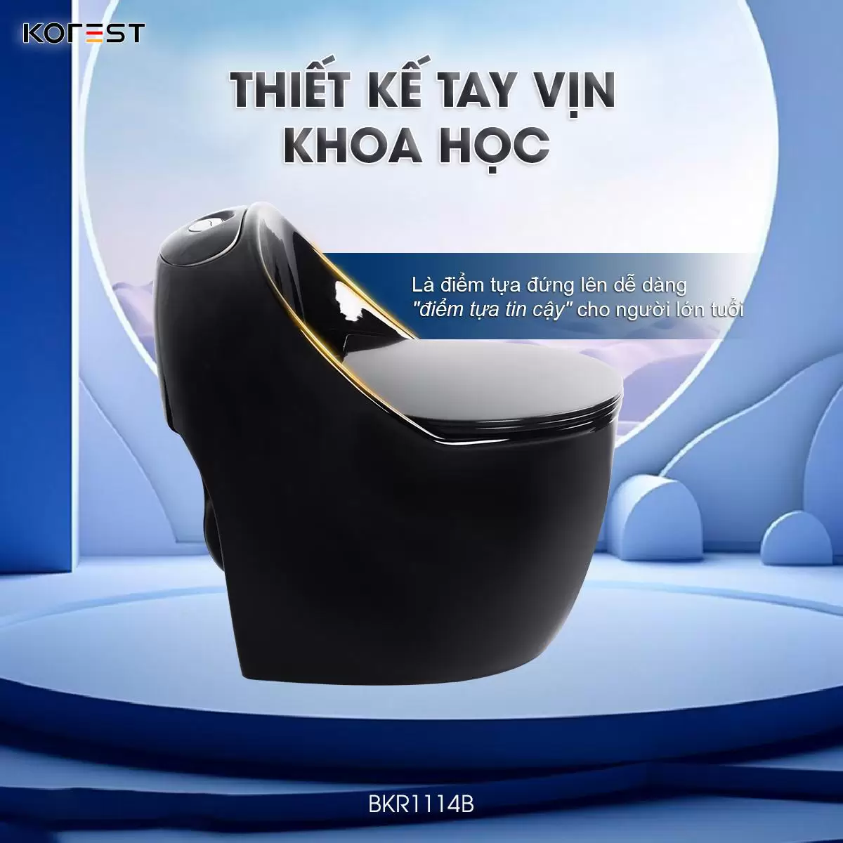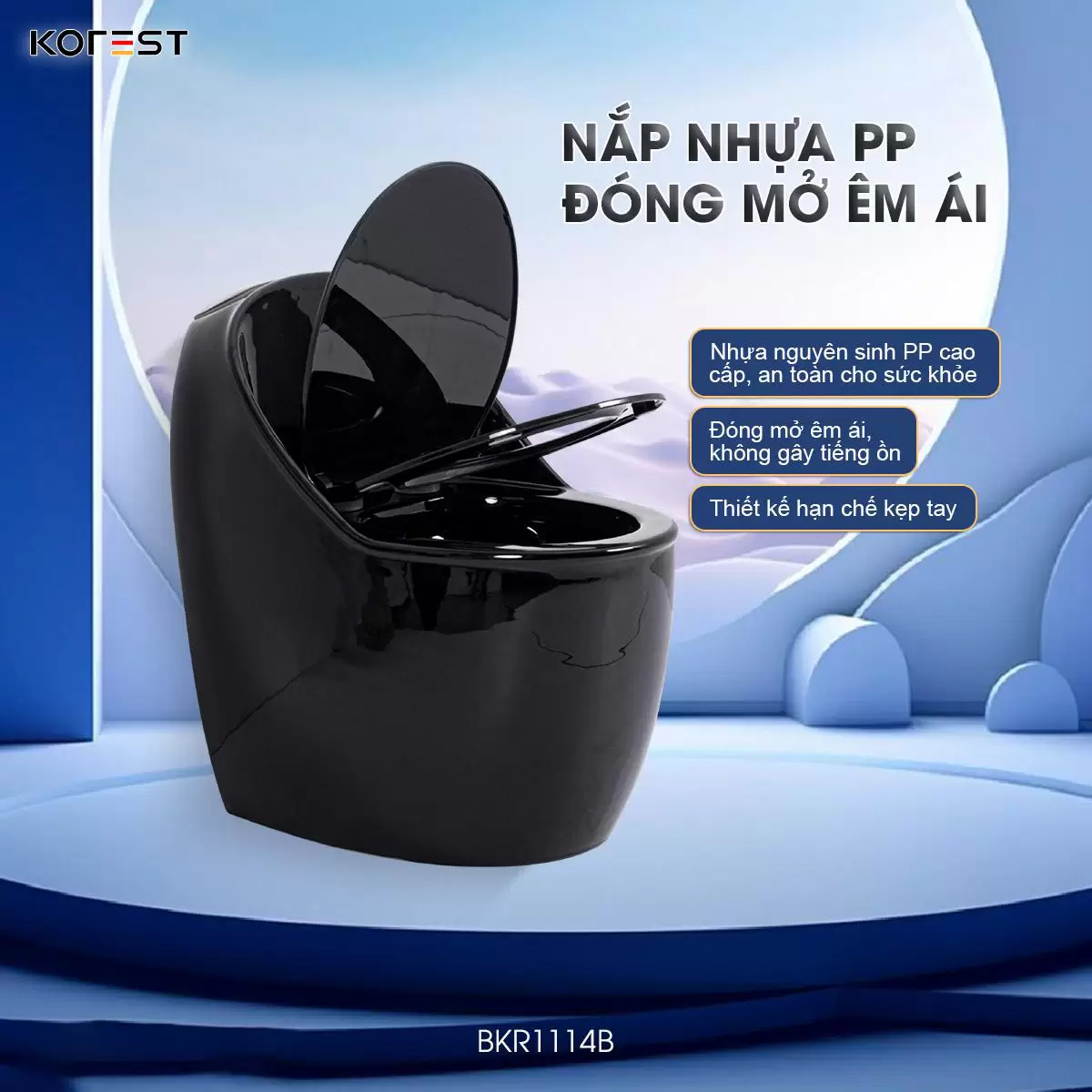 Không dành cho số đông, KOREST BKR1114B là lựa chọn táo bạo cho những không gian phòng tắm mang đậm dấu ấn cá nhân. Sắc đen huyền bí phủ lên thiết kế dáng trứng mềm mại, tạo nên sự giao thoa hoàn hảo giữa nét uy nghi và tinh tế. Không chỉ là thiết bị vệ sinh, BKR1114B là tuyên ngôn thẩm mỹ dành cho những ai theo đuổi phong cách sống sang trọng, khác biệt và đầy bản lĩnh.