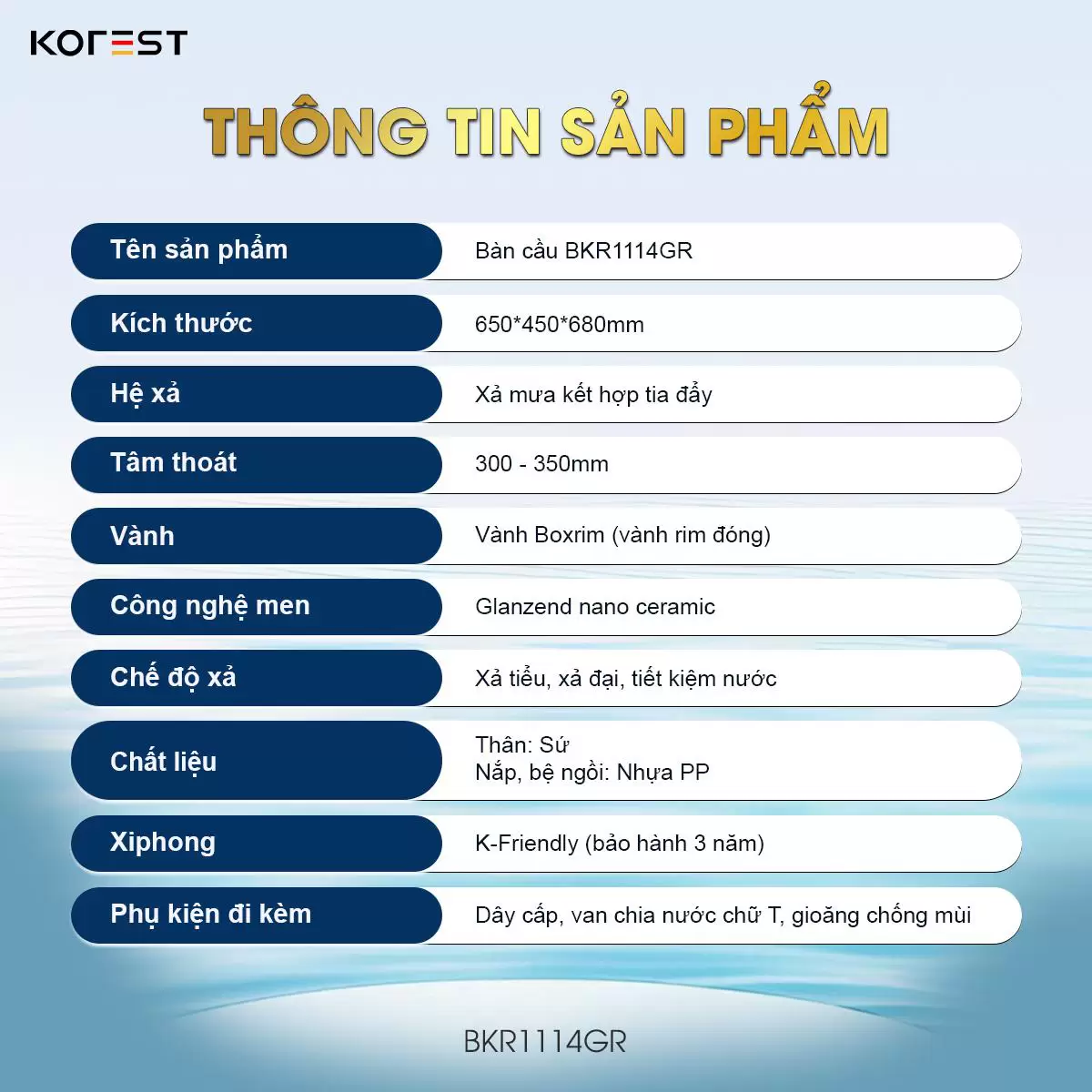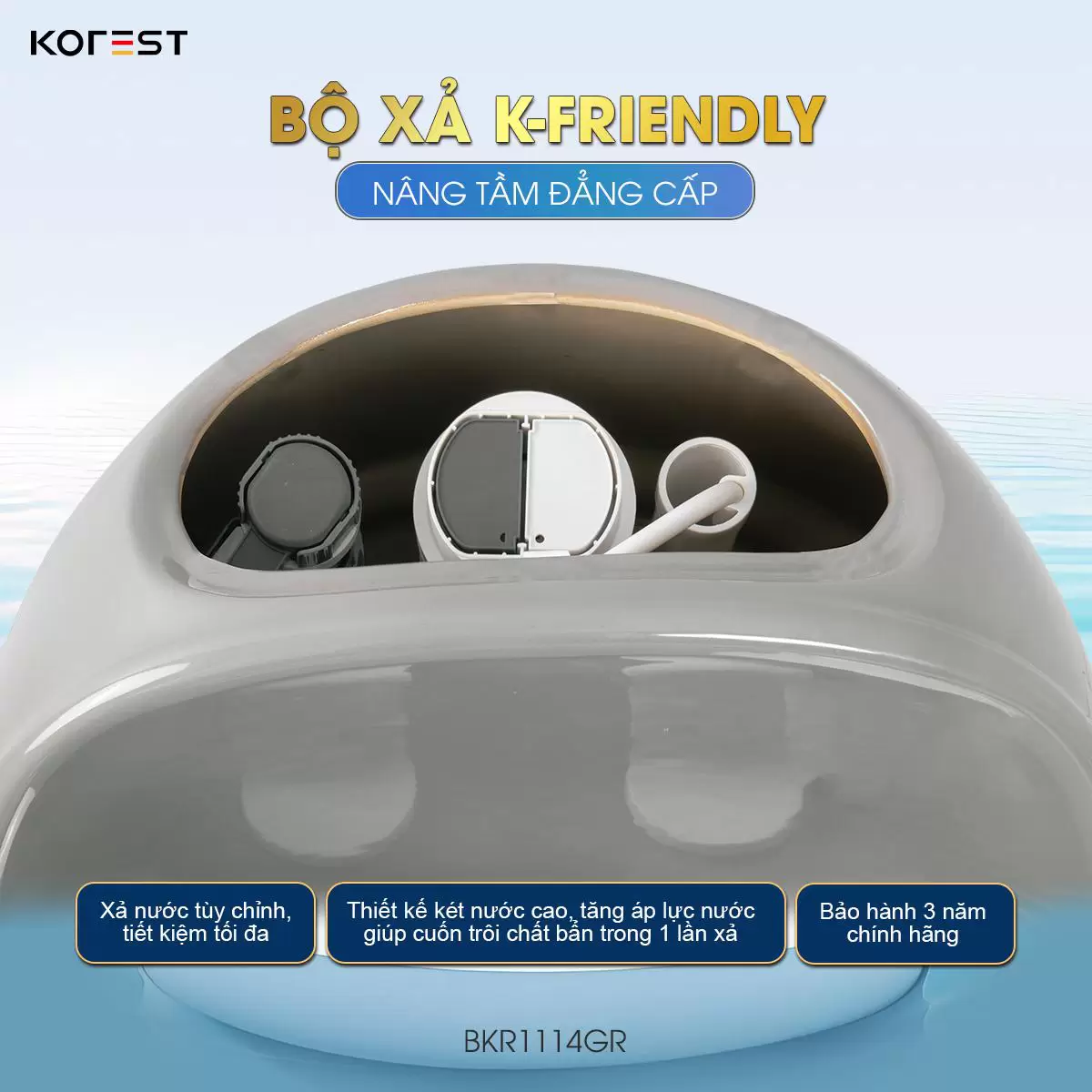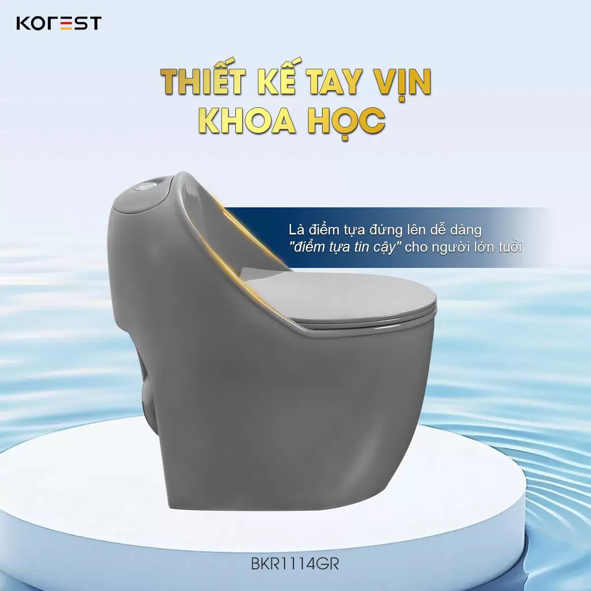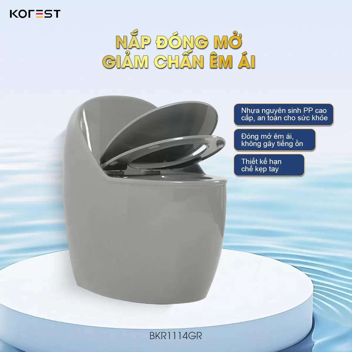 Không phô trương nhưng đầy sức hút, KOREST BKR1114GR chinh phục người dùng bằng gam xám trung tính – sắc màu của sự hiện đại, tinh tế và chuẩn mực thẩm mỹ mới. Thiết kế dáng trứng mềm mại kết hợp cùng bề mặt mờ sang trọng tạo nên một tổng thể hài hòa, thanh lịch, dễ dàng hòa nhập vào nhiều phong cách nội thất. BKR1114GR không chỉ là thiết bị vệ sinh, mà là điểm nhấn đắt giá giúp không gian phòng tắm trở nên cuốn hút và đậm chất riêng.