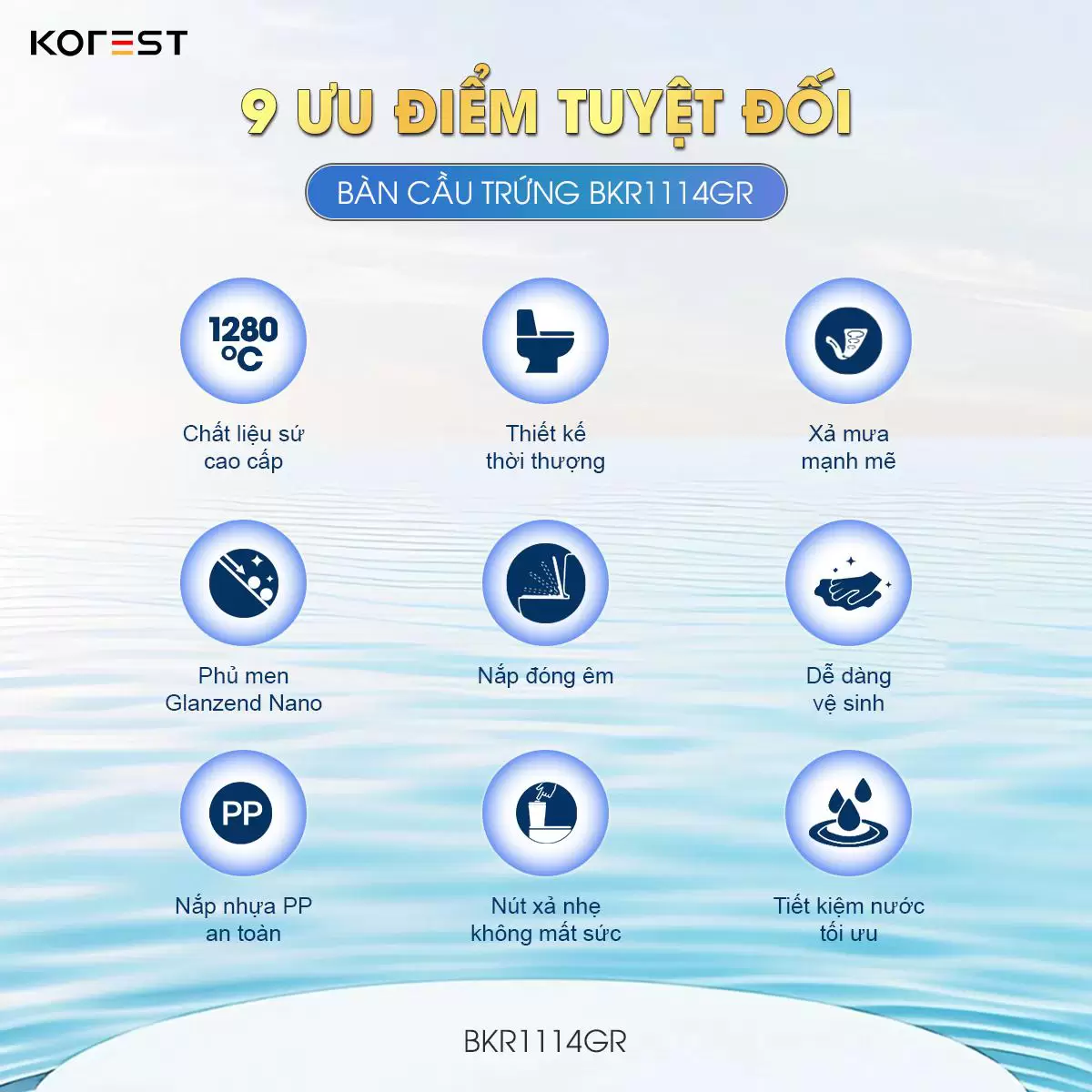 Bồn Cầu 1 Khối KOREST BKR1114GR | Bồn Cầu Trứng | Độc Đáo