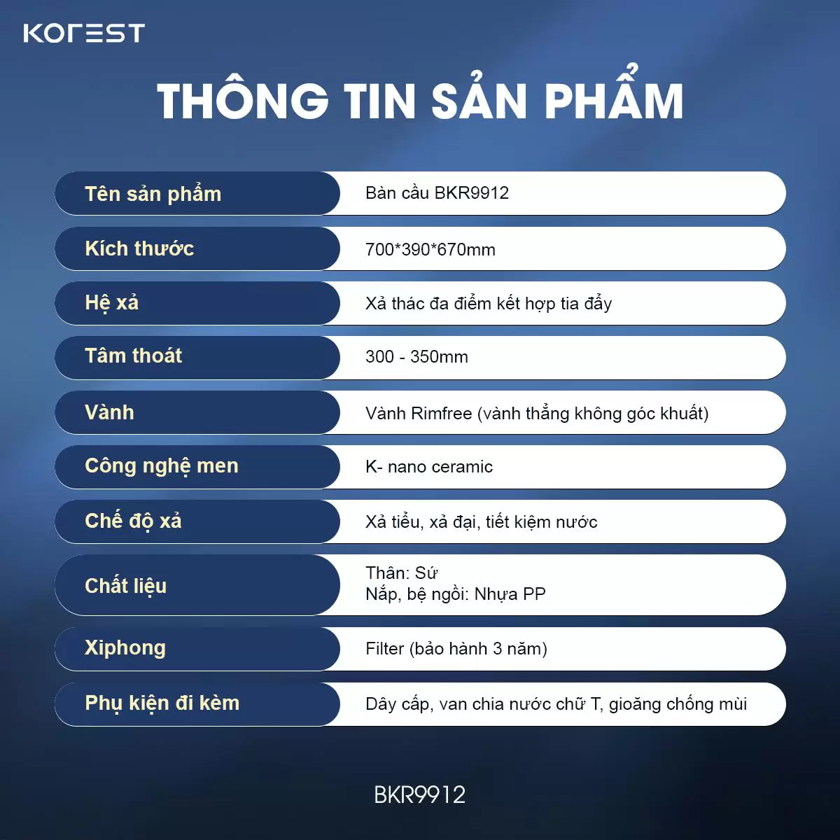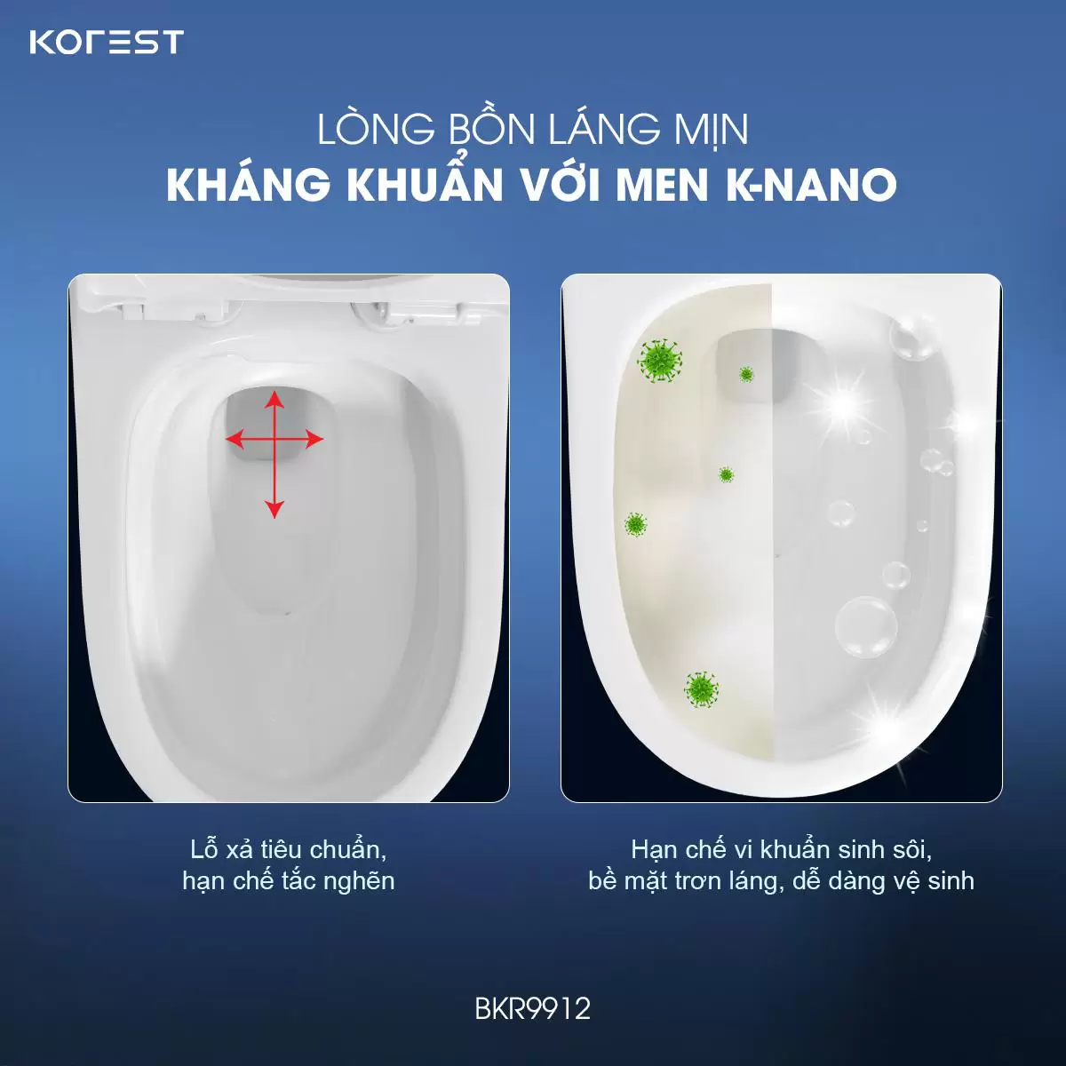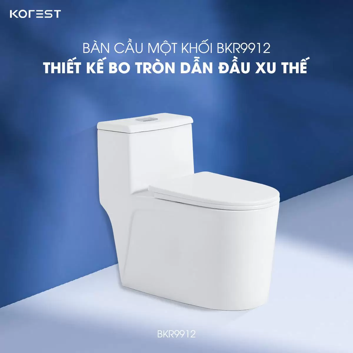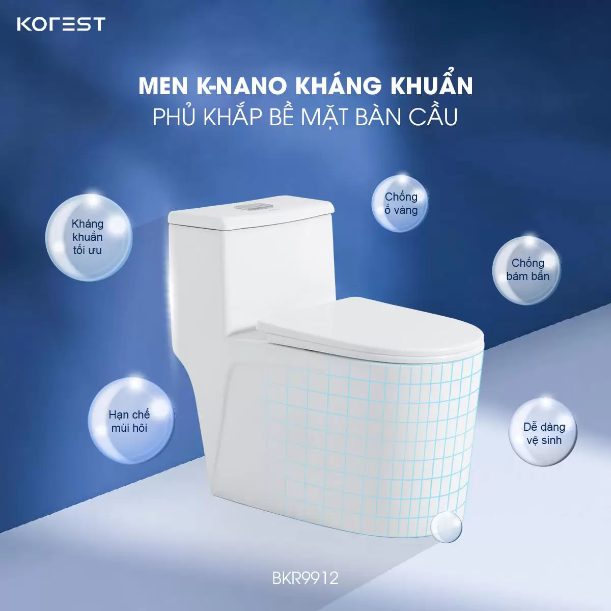 Bồn Cầu 1 Khối KOREST BKR9912 | Chống Ố Vàng | Dễ Vệ Sinh