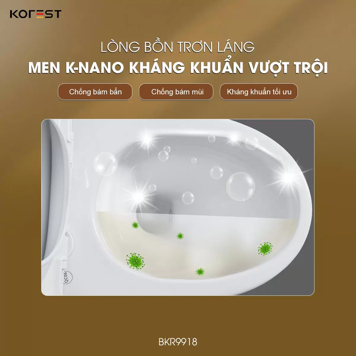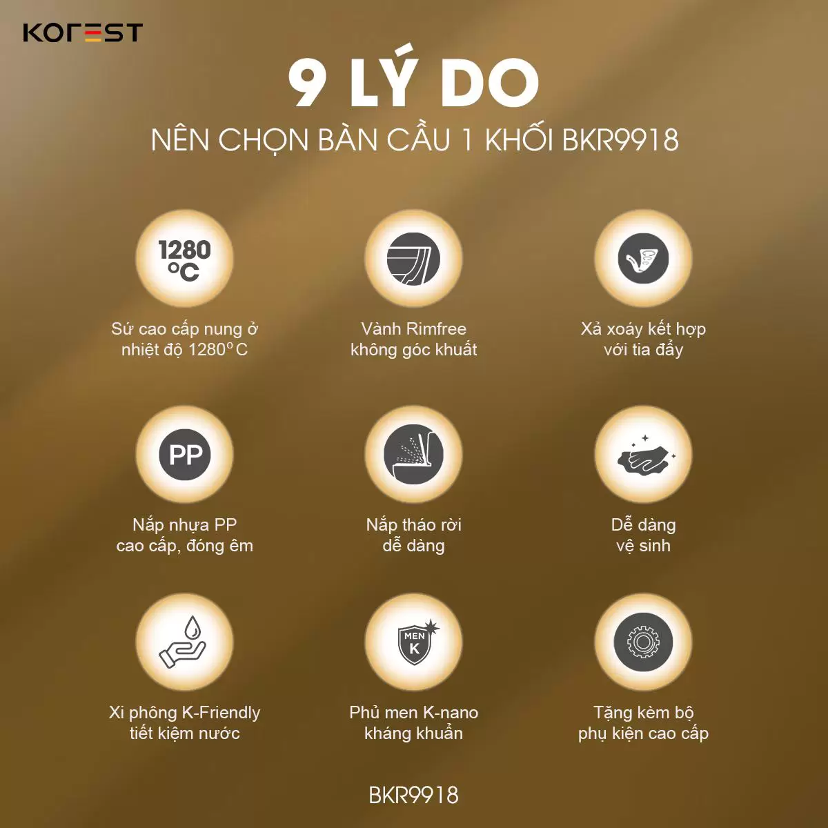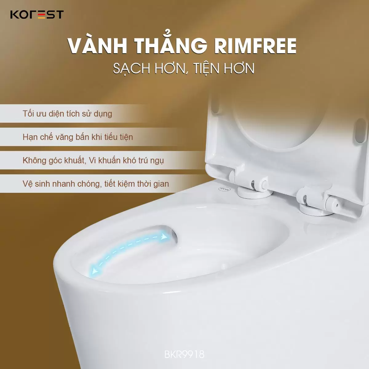 Đơn giản nhưng không đơn điệu, KOREST BKR9918 là lựa chọn hoàn hảo cho những ai yêu thích sự tinh tế trong thiết kế. Kiểu dáng lưng thẳng thanh lịch kết hợp với kích thước tối ưu 690 x 390 x 750mm giúp sản phẩm dễ dàng phù hợp với mọi không gian – từ phòng tắm rộng rãi đến diện tích khiêm tốn. BKR9918 không chỉ làm đẹp cho không gian mà còn mang đến trải nghiệm sử dụng tiện nghi, hiện đại.