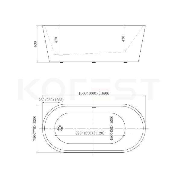 Bồn Tắm Đặt Sàn KOREST BTKR163-160N | Kiểu Dáng Thanh Lịch | Dễ Lắp Đặt