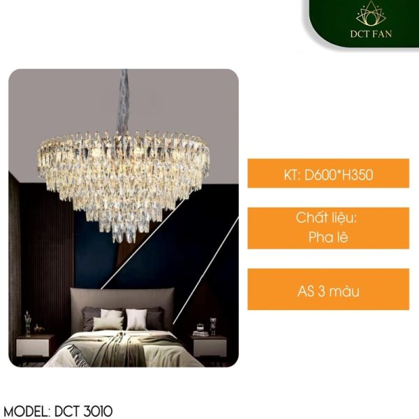 Trang chủ » Sản phẩm » Đèn trang trí » Đèn trang trí trong nhà » Đèn trần & đèn chùm » Đèn Chùm Pha Lê DCT 3010 | Mâm Tròn D600–D750, Pha Lê Giọt Tầng | Ánh Sáng Lung Linh Cho Phòng Ngủ