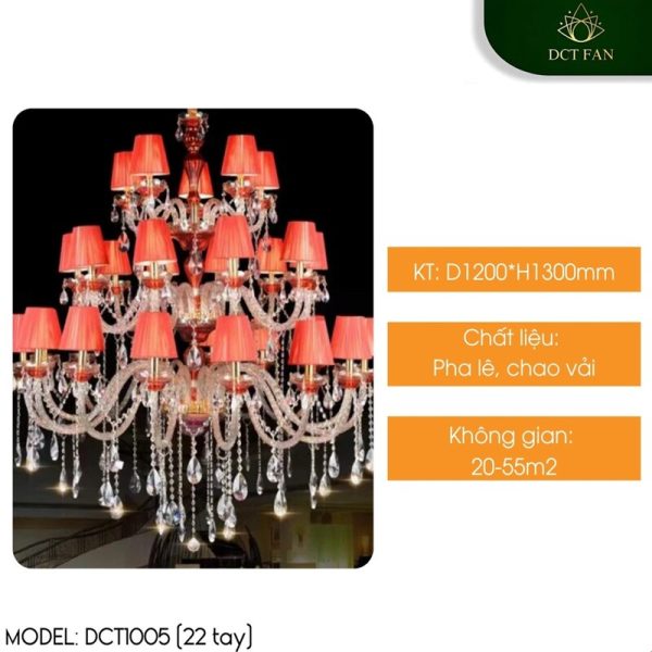Trang chủ » Sản phẩm » Đèn trang trí » Đèn trang trí trong nhà » Đèn trần & đèn chùm » Đèn Chùm Pha Lê DCT DCT1005 | 12+6+4 Tay Cỡ Lớn | Chao Vải Đỏ Nổi Bật, Pha Lê Treo Nhiều Tầng