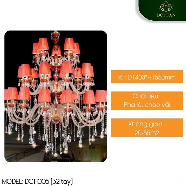 Đèn Chùm Pha Lê DCT DCT1005 | 16+10+6 Tay Siêu Đại | Chao Vải Đỏ Nổi Bật, Pha Lê Treo Nhiều Tầng