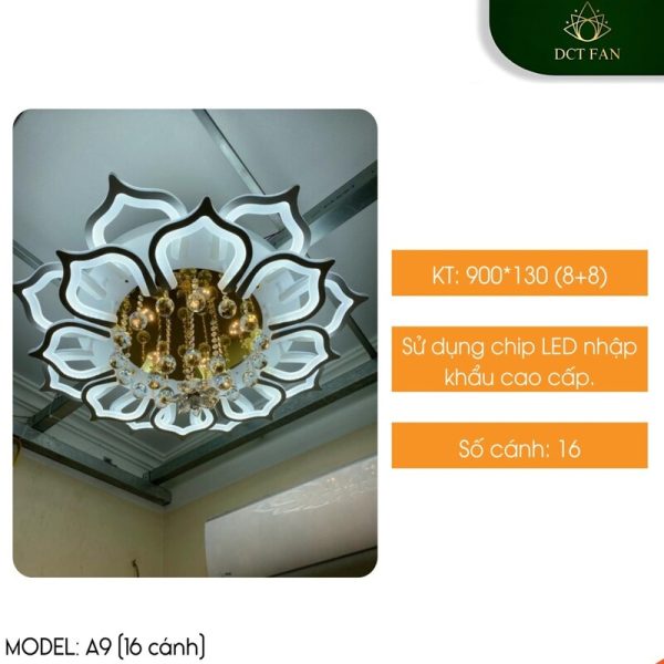 Đèn Ốp Trần Decor DCT A9 | 16 Cánh Hoa Kết Hợp Pha Lê | Ánh Sáng LED 3 Chế Độ Sang Trọng