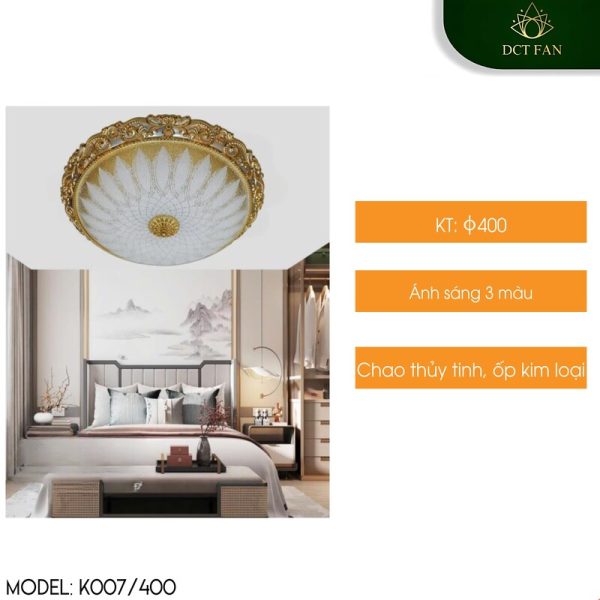 Trang chủ » Sản phẩm » Đèn trang trí » Đèn trang trí trong nhà » Đèn ốp trần » Đèn Ốp Trần Decor K007/400 | Hoa Văn Đài Sen Tinh Xảo | Chao Thủy Tinh Mạ Vàng