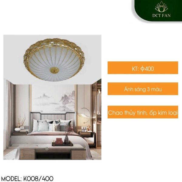 Trang chủ » Sản phẩm » Đèn trang trí » Đèn trang trí trong nhà » Đèn ốp trần » Đèn Ốp Trần Decor K008/400 | Họa Tiết Cánh Quạt Nghệ Thuật | Chao Thủy Tinh 3 Màu
