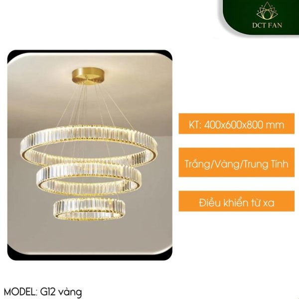 Trang chủ » Sản phẩm » Đèn trang trí » Đèn trang trí trong nhà » Đèn thả trần » Đèn Thả Decor G12 Vàng 400×600×800 | Vòng Pha Lê 3 Tầng Lớn | LED 3 Màu Điều Khiển Từ Xa