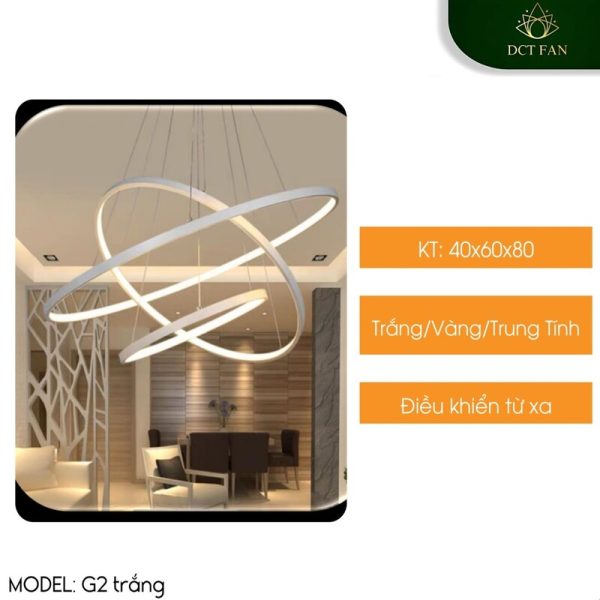 Trang chủ » Sản phẩm » Đèn trang trí » Đèn trang trí trong nhà » Đèn thả trần » Đèn Thả Decor G2 Trắng 40–60–80 | Thiết Kế 3 Vòng LED 3 Màu | Điều Khiển Từ Xa