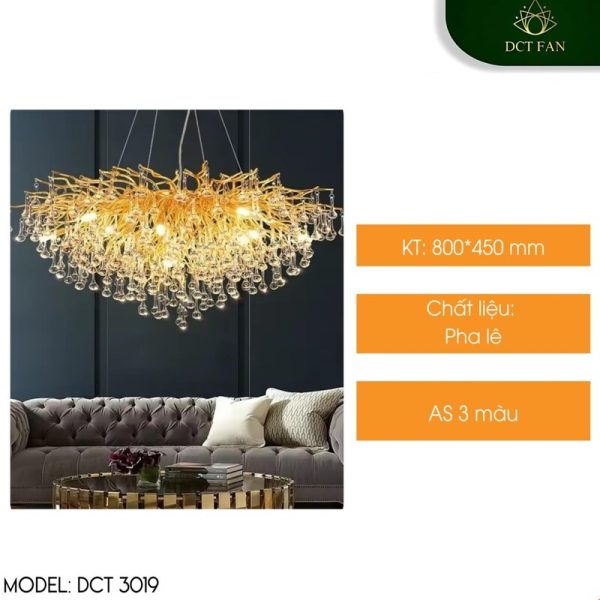 Trang chủ » Sản phẩm » Đèn trang trí » Đèn trang trí trong nhà » Đèn trần & đèn chùm » Đèn Thả Pha Lê DCT 3019 | Dạng Cành Nhánh Tròn, KT 800*450 | Dễ Phối Nhiều Không Gian