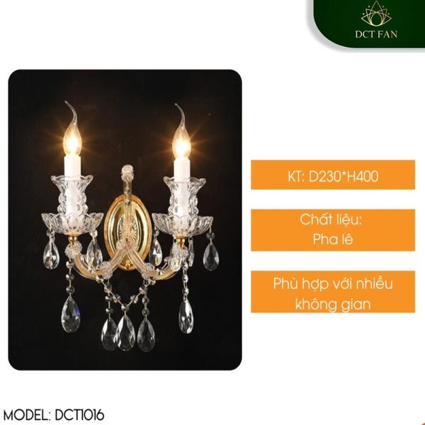 Đèn Tường Pha Lê DCT DCT1016 | 2 Đầu Cổ Điển | Đèn Vách Pha Lê 2 Đầu, Tay Uốn Cổ Điển