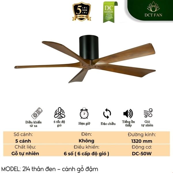 Khám phá những ưu điểm vượt trội của Quạt trần DCT FAN 214 – Thân Đen – Cánh Gỗ Đậm