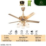 - Cánh kim loại bền bỉ, màu vàng đồng bộ: 5 cánh quạt được chế tạo từ kim loại cao cấp, phủ màu vàng đồng bộ với thân quạt, không chỉ đảm bảo độ bền vượt trội, khả năng chịu lực tốt mà còn tạo ra luồng gió mạnh mẽ, lan tỏa đều khắp không gian, đồng thời tăng thêm vẻ đẹp sang trọng, nhất quán cho sản phẩm.