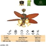 - Đèn trang trí cổ điển: Tích hợp chùm đèn sử dụng bóng đui E27 thông dụng, dễ dàng thay thế, vừa cung cấp ánh sáng ấm cúng cho căn phòng vừa hoàn thiện vẻ đẹp thẩm mỹ cổ điển của quạt.
