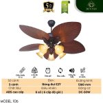- Đèn trang trí cổ điển: Tích hợp chùm đèn sử dụng bóng đui E27 thông dụng, dễ dàng thay thế, vừa cung cấp ánh sáng ấm cúng cho căn phòng vừa hoàn thiện vẻ đẹp thẩm mỹ cổ điển của quạt.