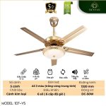 • Thiết kế 5 cánh kim loại màu vàng đồng, bền bỉ: Với 5 cánh quạt làm từ kim loại cao cấp được sơn màu vàng đồng tinh tế, sản phẩm mang đến vẻ đẹp sang trọng, lộng lẫy và độ bền vượt trội. Đường kính quạt 1320mm phù hợp với nhiều không gian phòng như phòng khách, phòng ngủ, phòng ăn theo phong cách tân cổ điển.
