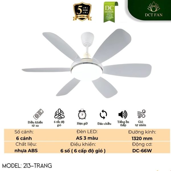 Quạt trần đèn LED DCT FAN 213-TRANG – Sự lựa chọn vượt trội so với quạt trần truyền thống
