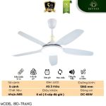 Mang đến sự kết hợp hoàn hảo giữa vẻ đẹp tinh khôi, hiện đại, hiệu năng làm mát vượt trội và công nghệ tiết kiệm năng lượng cho không gian sống của bạn với quạt trần đèn DCT FAN 810 – Trắng. Sản phẩm không chỉ là một thiết bị làm mát mà còn là một điểm nhấn trang trí đầy phong cách tối giản, vận hành êm ái và tích hợp đèn LED 3 màu tiện dụng, hứa hẹn nâng tầm đẳng cấp cho mọi căn phòng.