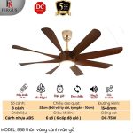 - Thiết kế 8 cánh vân gỗ, thân vàng sang trọng: Với 8 cánh quạt làm từ nhựa ABS cao cấp giả vân gỗ, sản phẩm mang đến vẻ đẹp tự nhiên, ấm cúng. Thân quạt màu vàng tạo điểm nhấn sang trọng, quý phái, dễ dàng phối hợp với nhiều phong cách nội thất, đặc biệt là những không gian mang hơi hướng cổ điển hoặc tân cổ điển. Đường kính quạt lớn 1540mm đảm bảo khả năng làm mát hiệu quả cho không gian rộng như phòng khách, sảnh lớn.