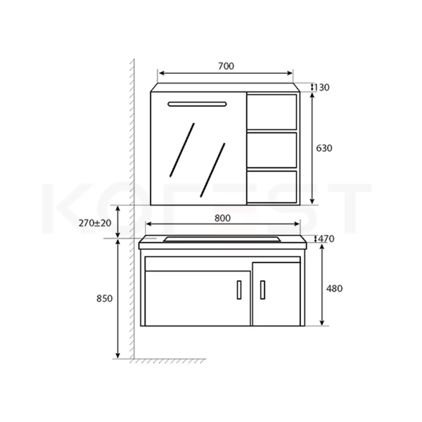 – Vật liệu tủ chậu: Nhôm sơn tĩnh điện