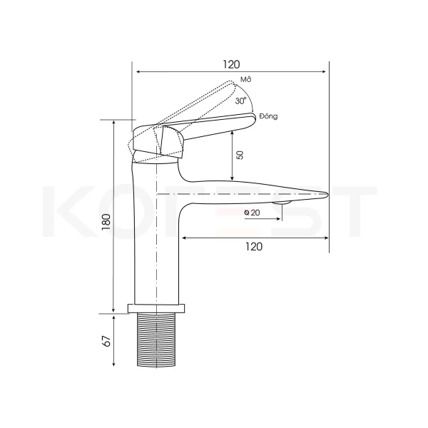 Phân loại sản phẩm: Vòi chậu lavabo Mã sản phẩm: K2207